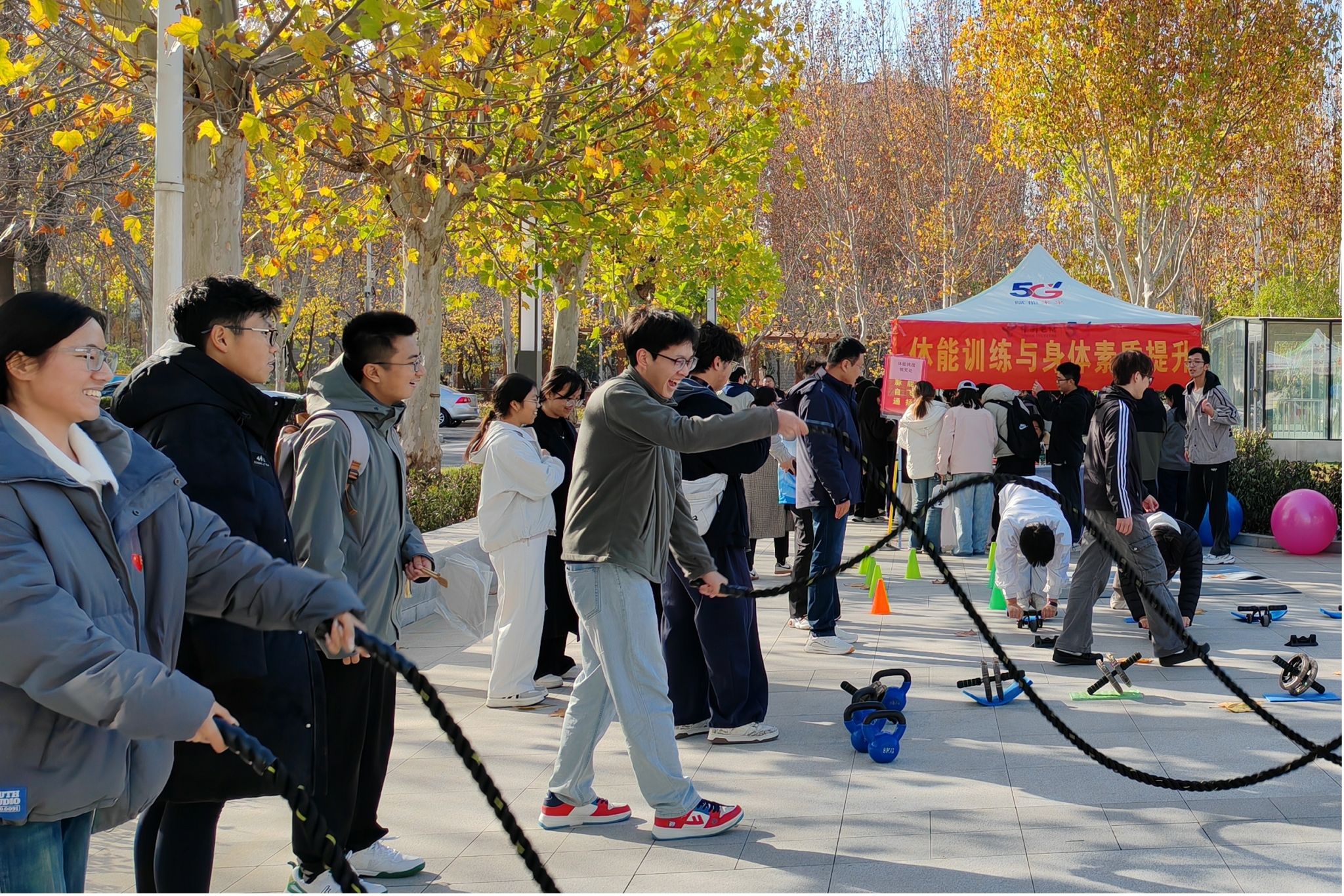 本网讯(文/李思慧 图/朱梓楠)为深入贯彻健康中国战略,推动党建工作与体育育人深度融合,11月25日,体育健康学院体育艺术教研室党支部与学生党支部联合参与学校社团文化节,开展“体能较量,培本固元”主题活动。教师党员、学生党员及各社团成员积极参与,以趣味化、专业化体能比拼传递健康理念,凝聚支部战斗力。